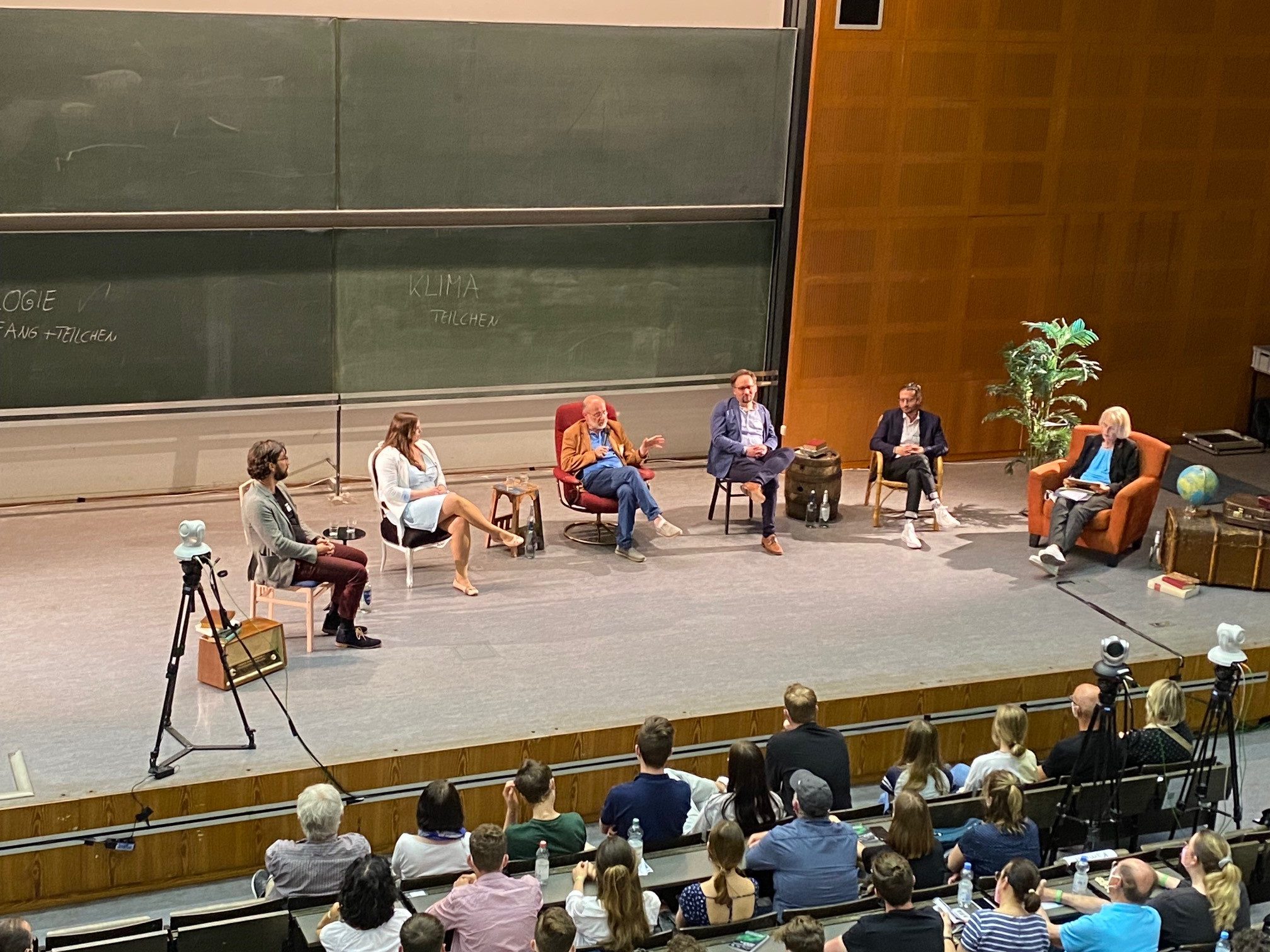 Am Samstag, den 21. Mai 2022 war es so weit: Nach pandemiebedingter Pause fand die Lange Nacht der Wissenschaften wieder statt! Der Termin im Mai wurde genutzt, um Programmpunkte auch im Freien abhalten zu können – und das Wetter hielt. Rund 300 Hochschulen, Forschungseinrichtungen, Unternehmen und forschungsnahe Einrichtungen laden in Nürnberg, Fürth und Erlangen zum Experimentieren, Zuhören, Fragen und Mitdiskutieren ein. An der Philosophischen Fakultät und Fachbereich Theologie war das Programm wieder außerordentlich vielfältig und auch die große Ankerveranstaltung der FAU fand im Audimax in der Bismarckstraße statt. Der Vortrag von Prof. Dr. Harald Lesch, bekannt aus TV-Formaten wie Terra X und Leschs Kosmos, begeisterte das Publikum und auch die anschließende Podiumsdiskussion mit Prof. Lesch und u.a. den Mitgliedern der Fakultät Prof. Dr. Louisa Kulke, Juniorprofessorin für Neurokognitive Entwicklungspsychologie, und PD Dr. Sebastian Büttner, Wissenschaftlicher Mitarbeiter am Institut für Soziologie, sorgte für ein volles Audimax.