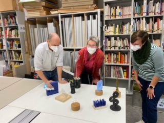 Ein Semester lang beschäftigten sie sich mit Design und Umsetzung, entwarfen mit Stift und Papier die Modelle, experimentierten mit dem 3D-Drucker und mit verschiedenen Materialien. Im November war es dann soweit und eine Jury bestehend aus Dr. Sabine Richter, Wissenschaftliche Mitarbeiterin am Lehrstuhl für Kunstpädagogik, Laura Leibinger vom Büro für Qualitätsmanagement und Kristine Bischof, Stabsstelle für Wissenschaftskommunikation an der Fakultät, begutachteten die Exemplare. Jens Velling-Schürmann begleitete den Prozess und stand mit Fachwissen für Fragen zur Verfügung.