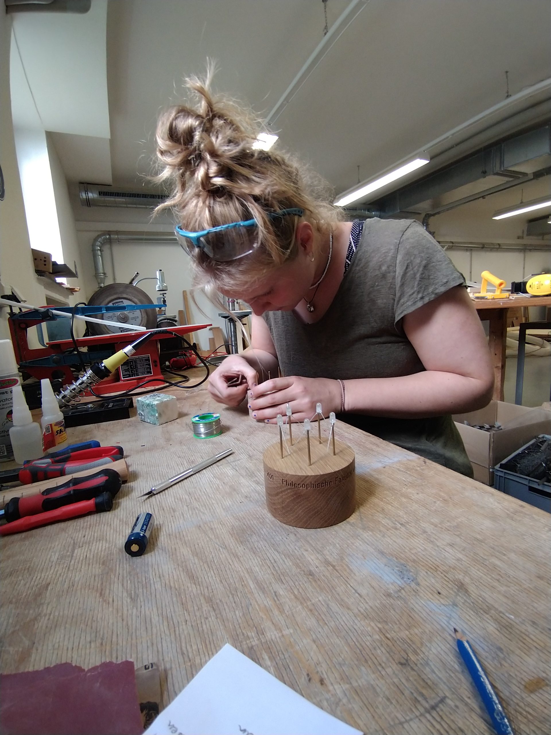 Im Seminar ‚Umwelt und Produkte gestalten‘ haben Studierende der Kunstpädagogik guter Lehre eine Gestalt gegeben und verschiedene Modelle entworfen. Eine Jury (siehe Beitrag) hat sich für das Modell von Pauline Büger entschieden. Ihr Modell konnte mit dem Gedanken überzeugen, dass für eine qualitative Lehre die Zusammenarbeit von Lehrenden und Studierenden von großer Bedeutung ist. Wenn die im Modell dargestellten Menschen sich ‚Hand in Hand‘ verbinden, geht allen ein Licht auf – und das nicht nur im übertragenen Sinne.
