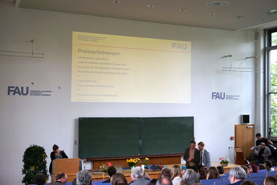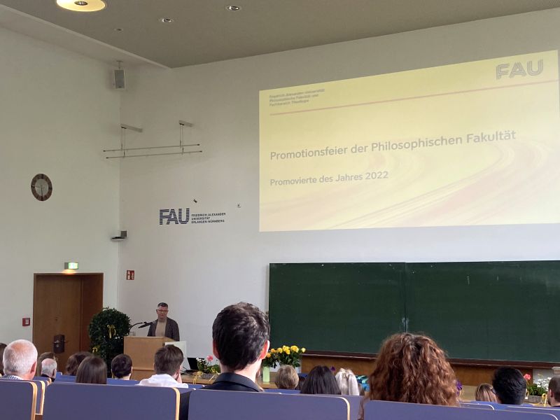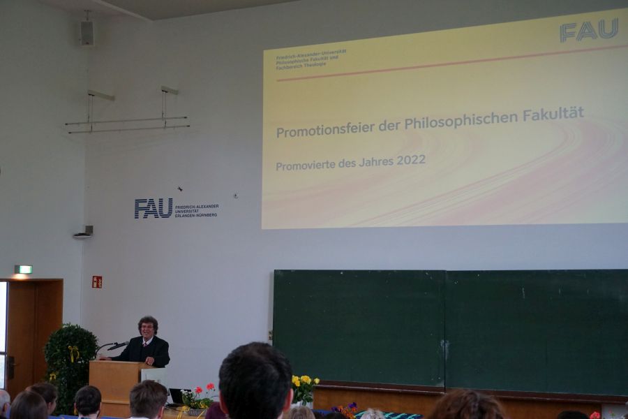 Nach einer Begrüßung durch den Dekan der Philosophischen Fakultät und Fachbereich Theologie, Prof. Dr. Rainer Trinczek, stellte der Vorsitzende des Promotionsausschusses Dr. phil., Herr Prof. Dr. Thomas Demmelhuber, sowie der Vorsitzende des Promotionsausschusses Dr. theol., Herr Prof. Dr. Peter Dabrock, die Promovierten des Jahres 2022 vor. In diesem Rahmen wurden auch die Promotionspreise und die Preise für wissenschaftliche Abschlussarbeiten verliehen.