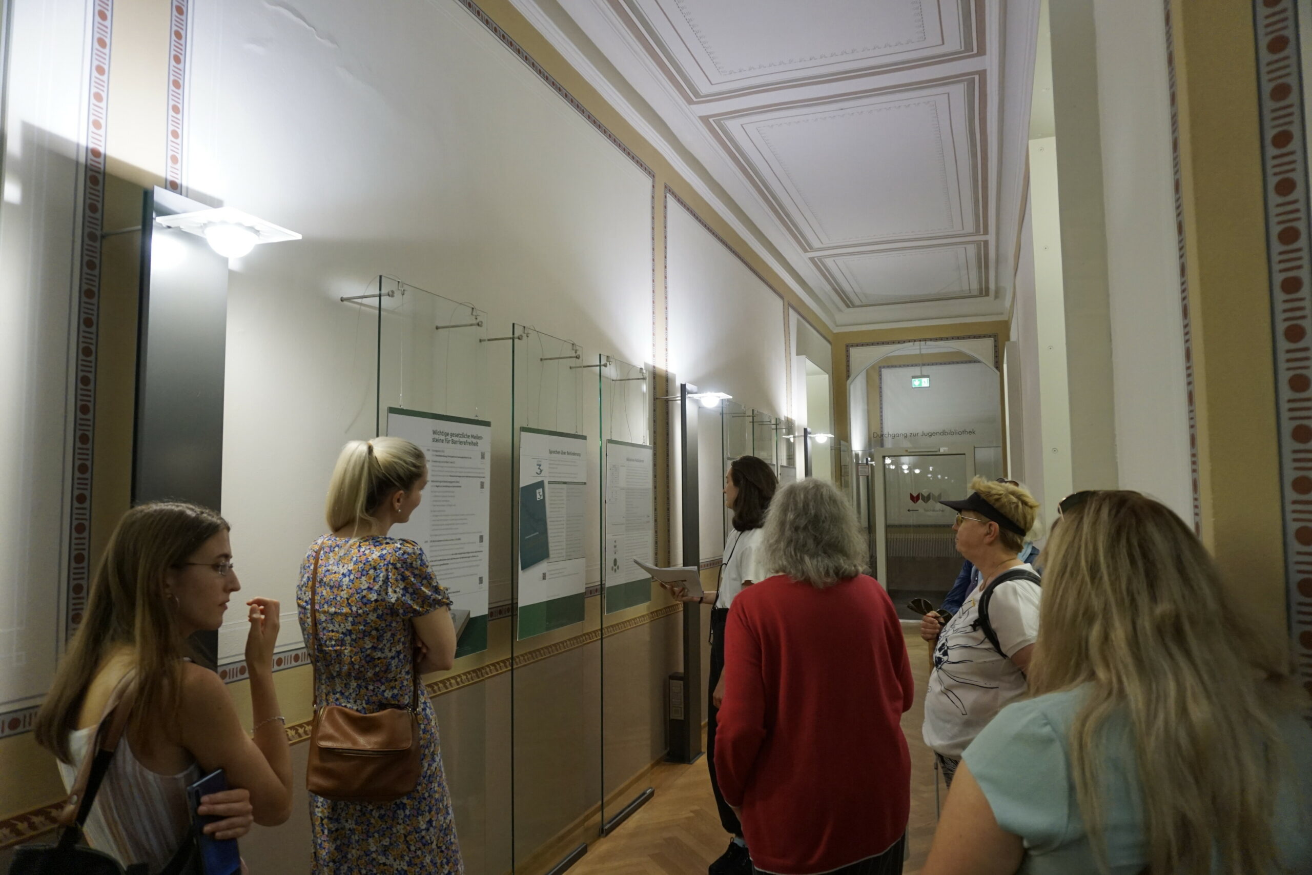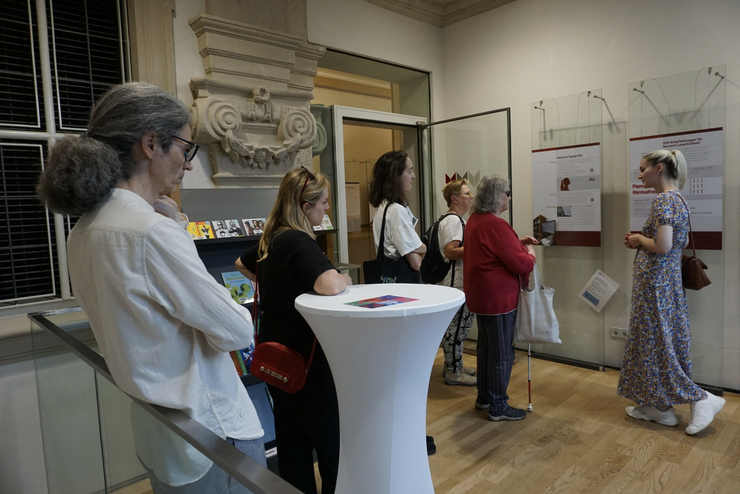Dass die Ausstellungseröffnung am 13. Juli so gut besucht war, hat Mandy Eisenkolb sehr gefreut. „Es war beeindruckend, wie unsere Arbeit wertgeschätzt wurde. Es waren ja auch Betroffene vor Ort, die sich gefreut haben, dass die Stadtbibliothek aber auch wir als Studierende diesem wichtigen Bereich der Literatur Aufmerksamkeit widmen und darauf hinweisen, wie wichtig der Abbau der Barrieren ist. Ich als Nicht-Betroffene war mir vielen Probleme nicht bewusst und mit der Ausstellung können sich die Menschen informieren und sich vielleicht auch ganz individuell mit dem Thema in ihrem Umfeld weiter auseinandersetzen. Ich würde es mir wünschen.“