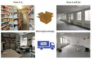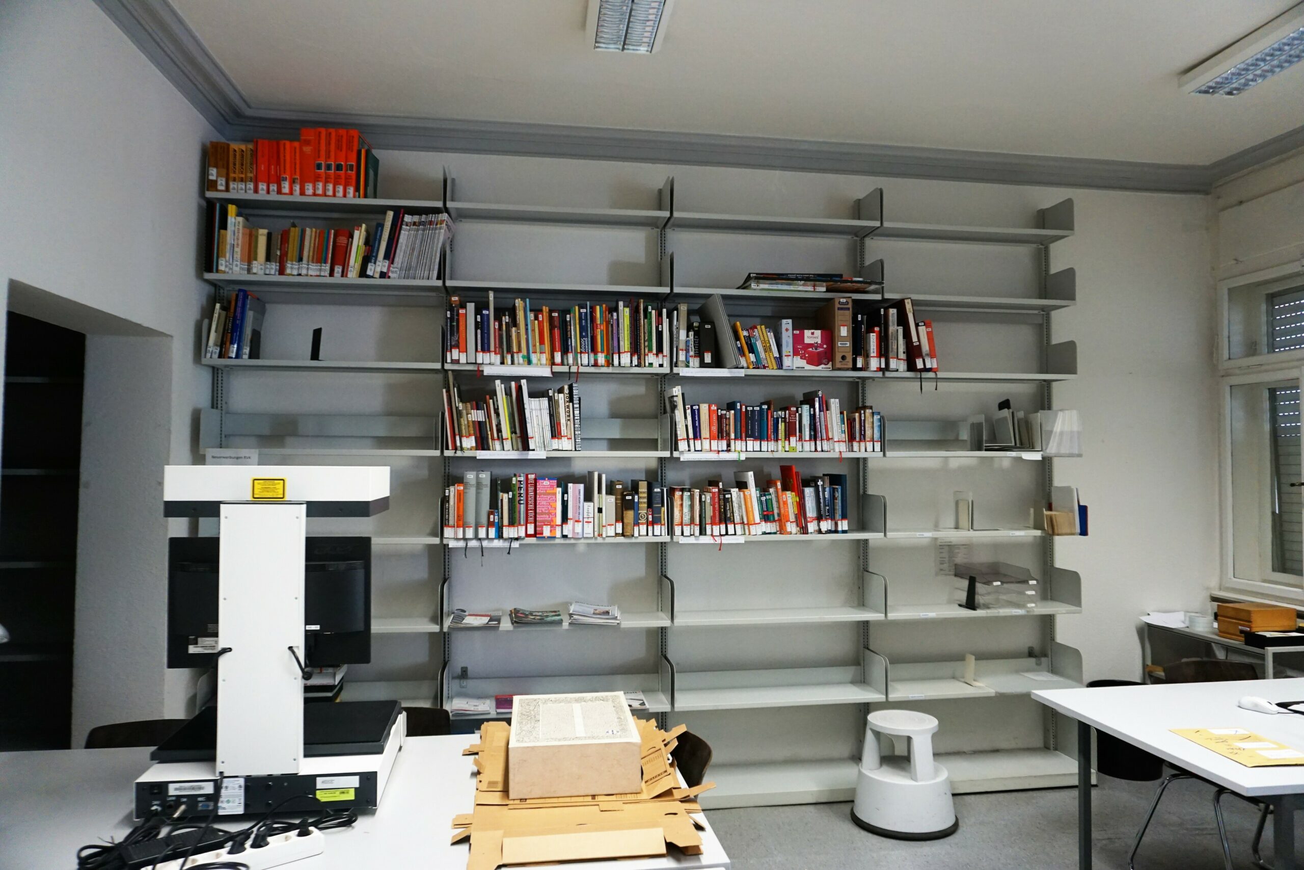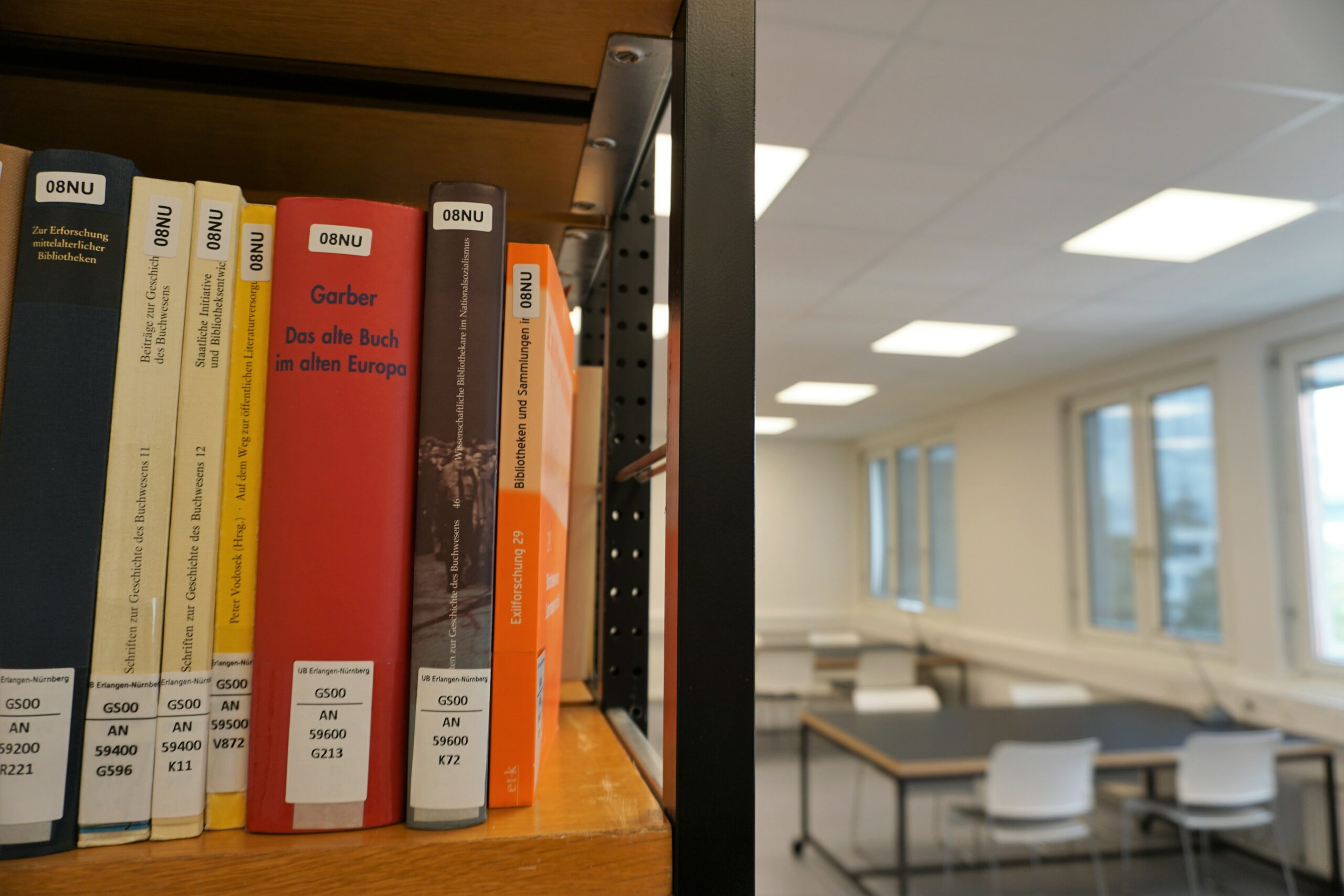 Nicht nur die Mitarbeitenden freuen sich über neue, freundliche Büroräume, auch für die Studierenden bringt der Umzug Vorteile: In der Institutsbibliothek sind nun alle Bücherbestände zusammengeführt und der große, helle Raum bietet acht Arbeitsplätze. Außerdem gibt es einen Buchscanner und ein Kopiergerät. Neu ist auch, dass Studierende die Bücher nun mit ihrer FAU-Karte ausleihen können.